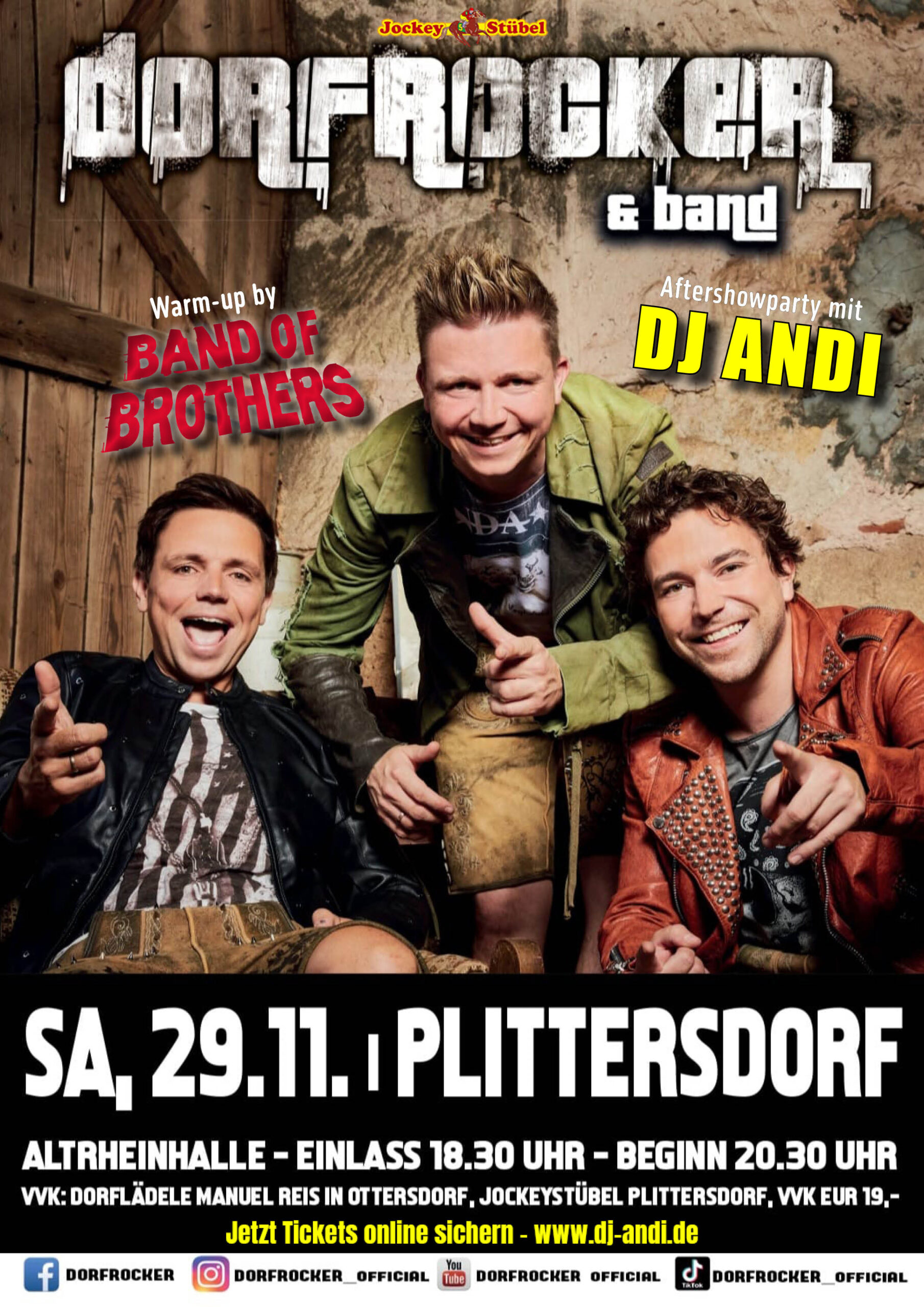 Die Dorfrocker & Band in der Altrheinhalle in Rastatt-Plittersdorf. Im Vorprogramm die Band of Brothers. Aftershowparty mit DJ Andi.